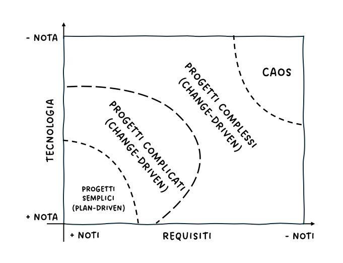 Nella matrice di Stacey si comprende bene che i progetti possono essere fortemente caratterizzati e contraddistinti a seconda che siano costituiti da una bassa, media o notevole incertezza, sia rispetto ai requisiti che dal punto di vista tecnico.